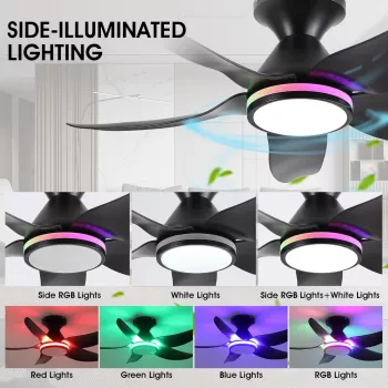 38" Ceiling Fan with Lights, RGB Ring, Remote & App Control, Flush Mount