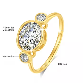 Oval Cut Moissanite Ring 2ct 14K Real Gold Wedding Jewelry for Women