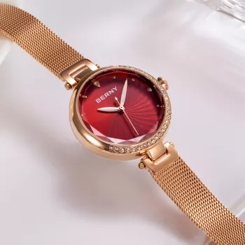Women’s Luxury Diamond Watch with Rose Gold Stainless Steel Strap